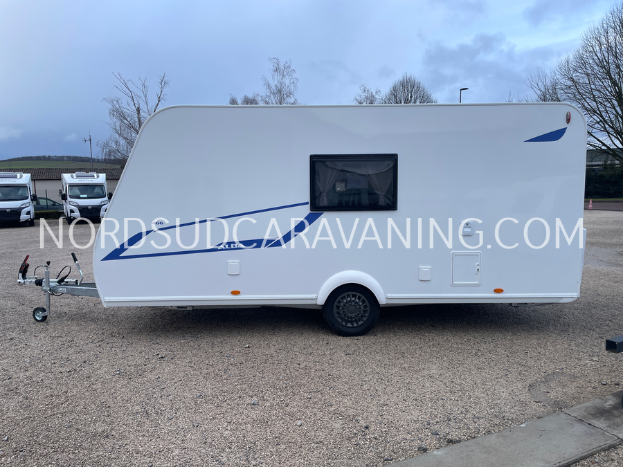Cette caravane rigide CARAVELAIR ALBA 466 est très agréable à vivre. Très bel espace nuit avec son lit transversal et ses nombreux rangements, vous vous sentirez comme à la maison. Cuisine équipée avec réfrigérateur 150 L, réchaud 2 feux gaz avec couvercle en verre, évier cuve inox. Elle a également un joli coin salle de bain, avec son toilette et son bac à douche.