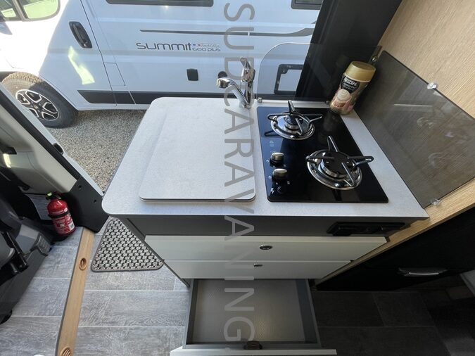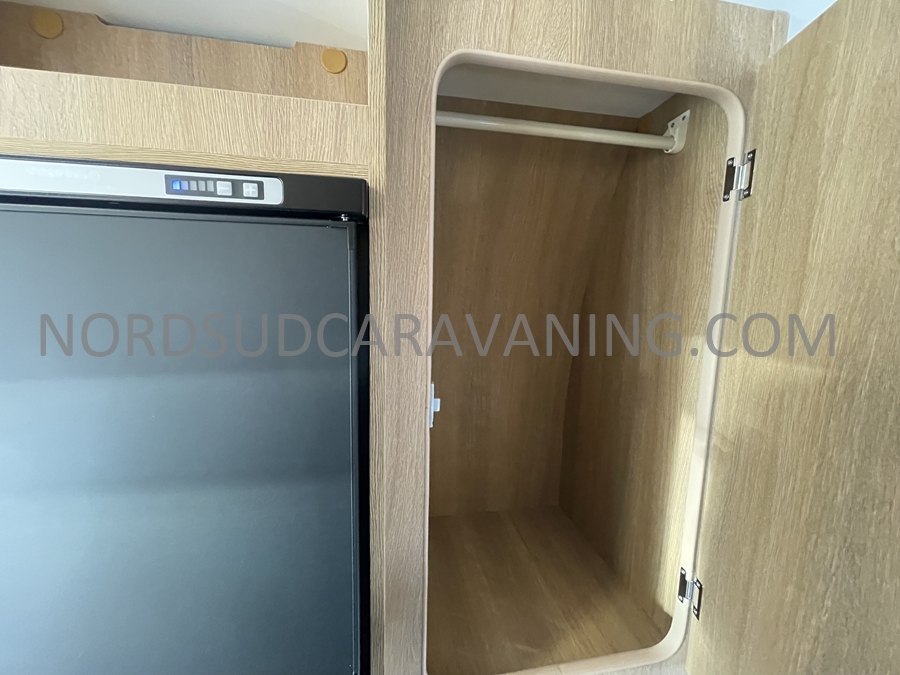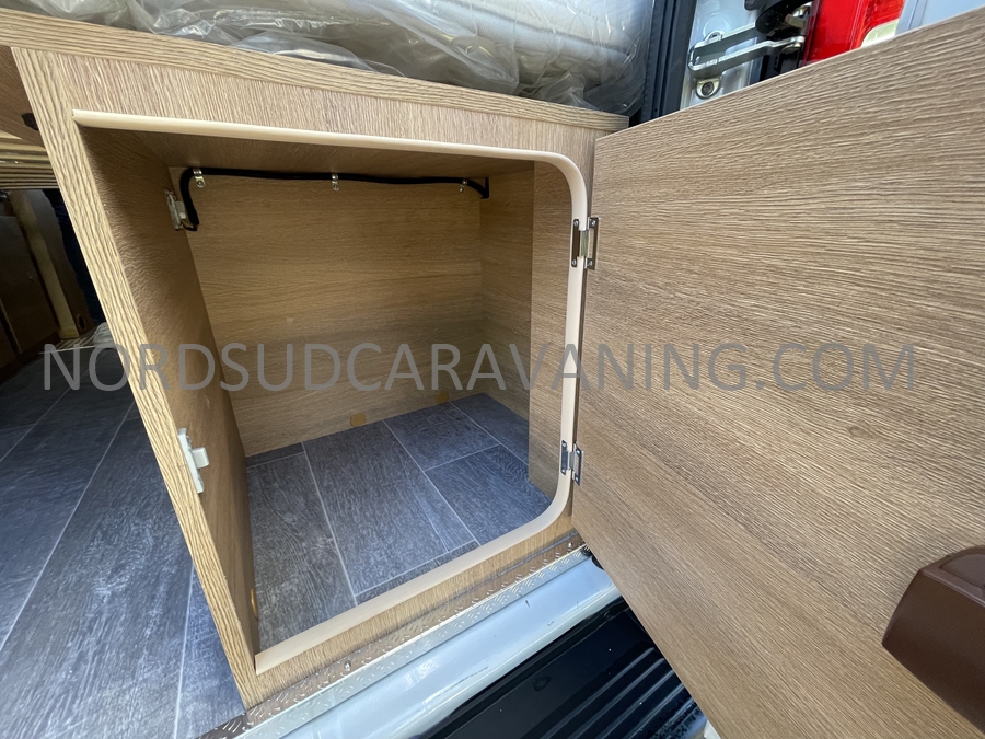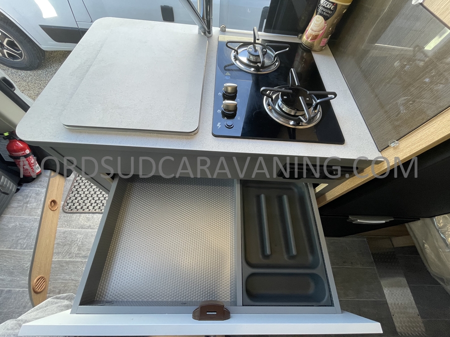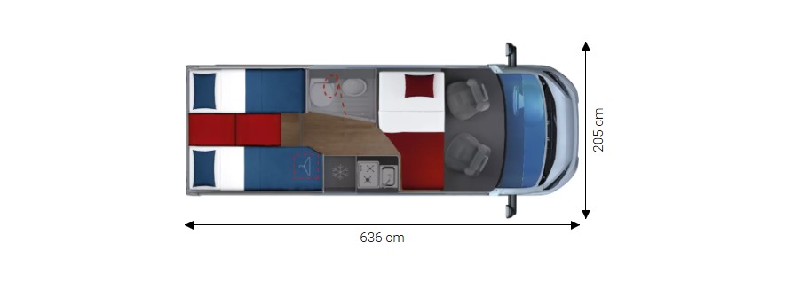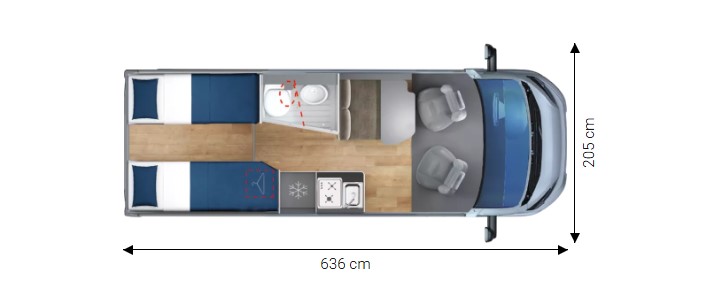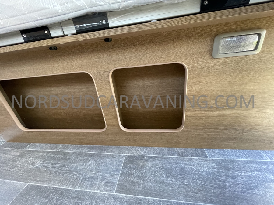 Long de 6,36 mètres, il offre une zone nuit XXL avec lits jumeaux arrières transformable en un grand couchage, de grands volumes de rangement et un espace de vie lumineux et fonctionnel. La salle de bain est bien aménagée, et les meubles modernes rendent chaque recoin pratique et agréable.